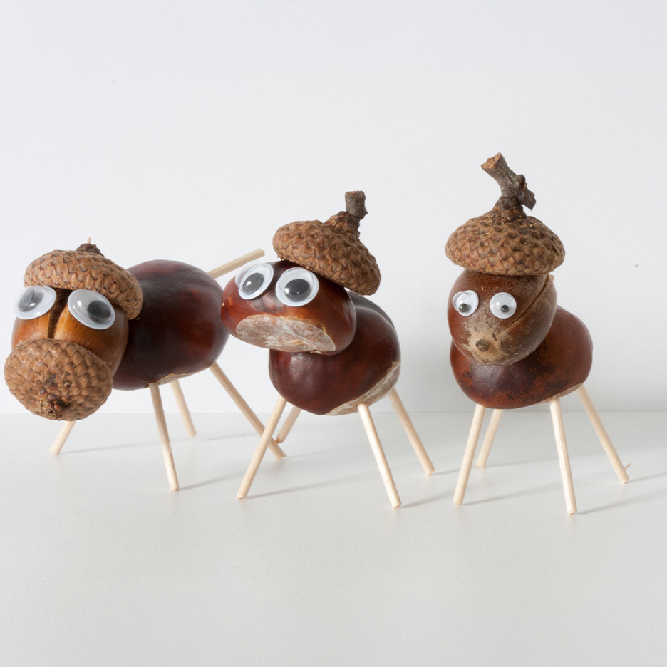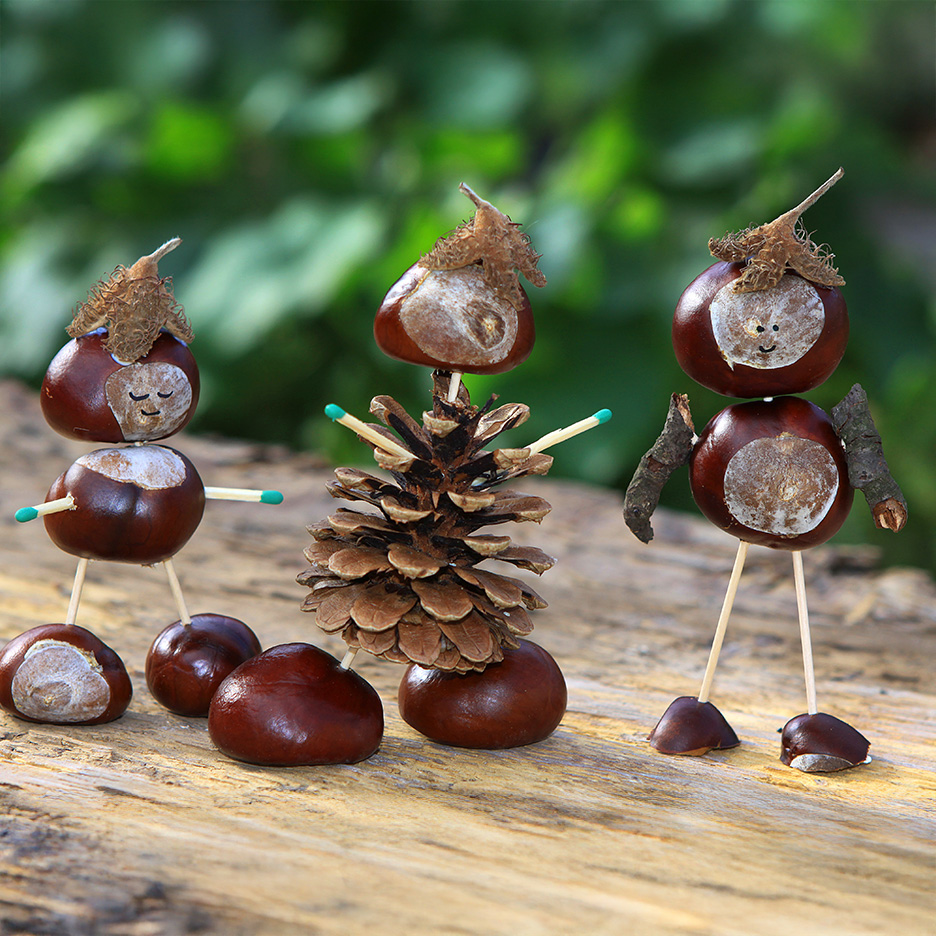 Autumn craft ideas to copyFor the little onesColoured autumn leaves are versatile materials. Create a picture of nature together with your child, stick the leaves on a sheet of paper and turn it into a real work of art with a little colour. Chestnuts are also suitable: Use toothpicks to stick arms and legs into them, glue on wiggly eyes and use pipe cleaners to add little tails or antennae to make hedgehogs, caterpillars or little imaginary creatures that are perfect for playing with. Hats or skirts can be made from the shells of beechnuts. The caps of the acorns also make great headdresses, eyes or buttons for your figures.for primary school childrenAn autumnal lantern is particularly popular. For this you need a simple glass, transparent paper in warm colours and dried leaves. Glue everything to the glass and light it from the inside with an LED candle. This will bring you cosy light on dark autumn evenings. Small figures made from cones are also great, which you can decorate with felt, colourful fabric scraps and natural materials. Make owls, mice or even little forest spirits to create a cosy atmosphere on the windowsill.for older childrenA homemade door wreath made from twigs is a lovely autumn decoration for your own home. Tie the twigs together to form a ring and decorate it with nuts, cones, leaves and perhaps a pretty bow. This marvellous decoration will adorn your entrance area and delight every guest. Another lovely project: a mobile made from natural materials. Simply attach strings to a sturdy branch and hang chestnuts, small wooden discs, leaves or feathers from them. The mobile moves easily in the breeze and brings the magic of autumn into the children's room.