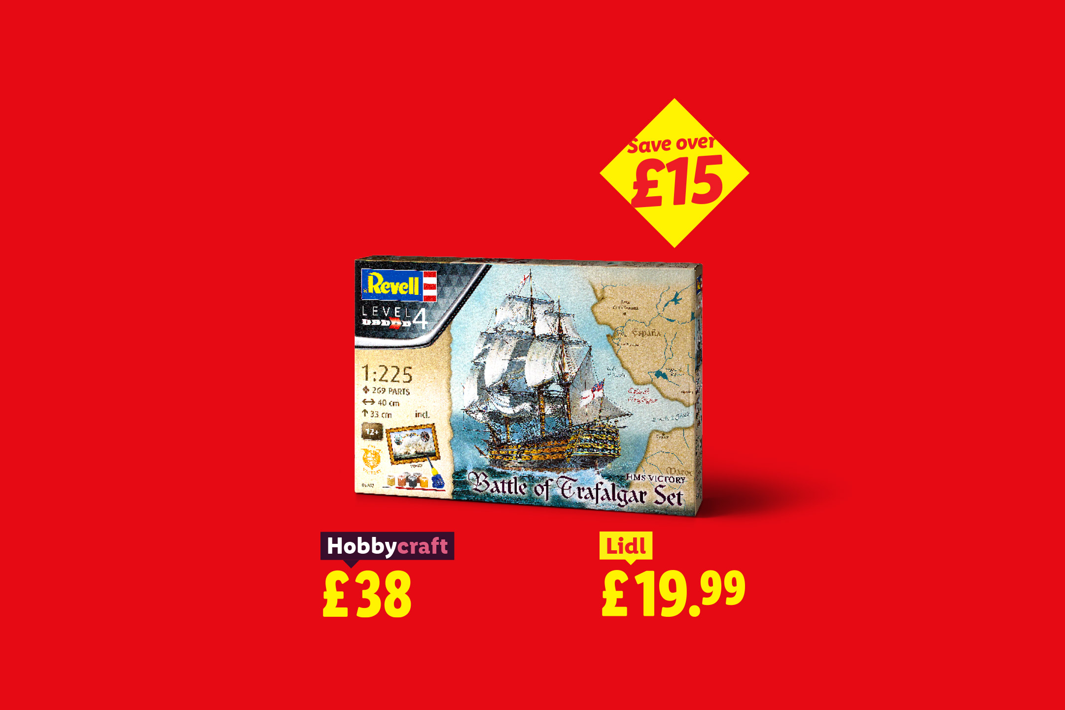 Revell HMS Victory - Battle of Trafalgar Set: While stocks last. Subject to availability from 27.11.25. Each store will receive limited stock, when it is gone it is gone. Selected stores. GB Only. Prices correct and checked at hobbycraft.co.uk on 13.11.25. Prices and packaging may vary. Hobbycraft may sell other products at other prices.